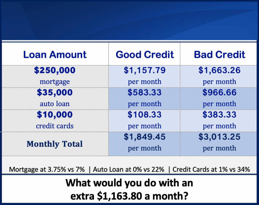 Bad credit closes doors and limits consumers to obtaining financing through sub-prime means resulting in excessively high-interest rates and towering monthly payments.